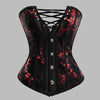 Gothic Steampunk Corset Black with Red Flowers and Lacing