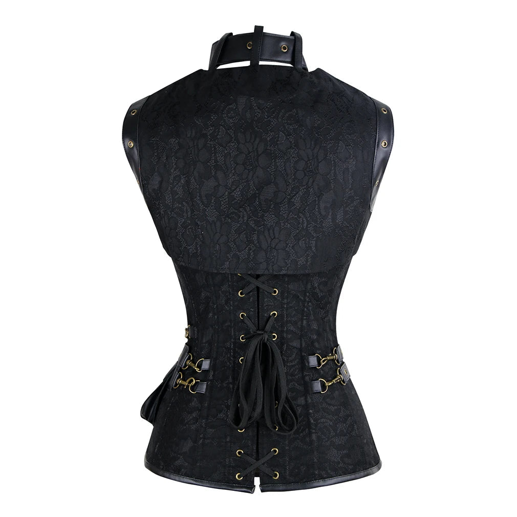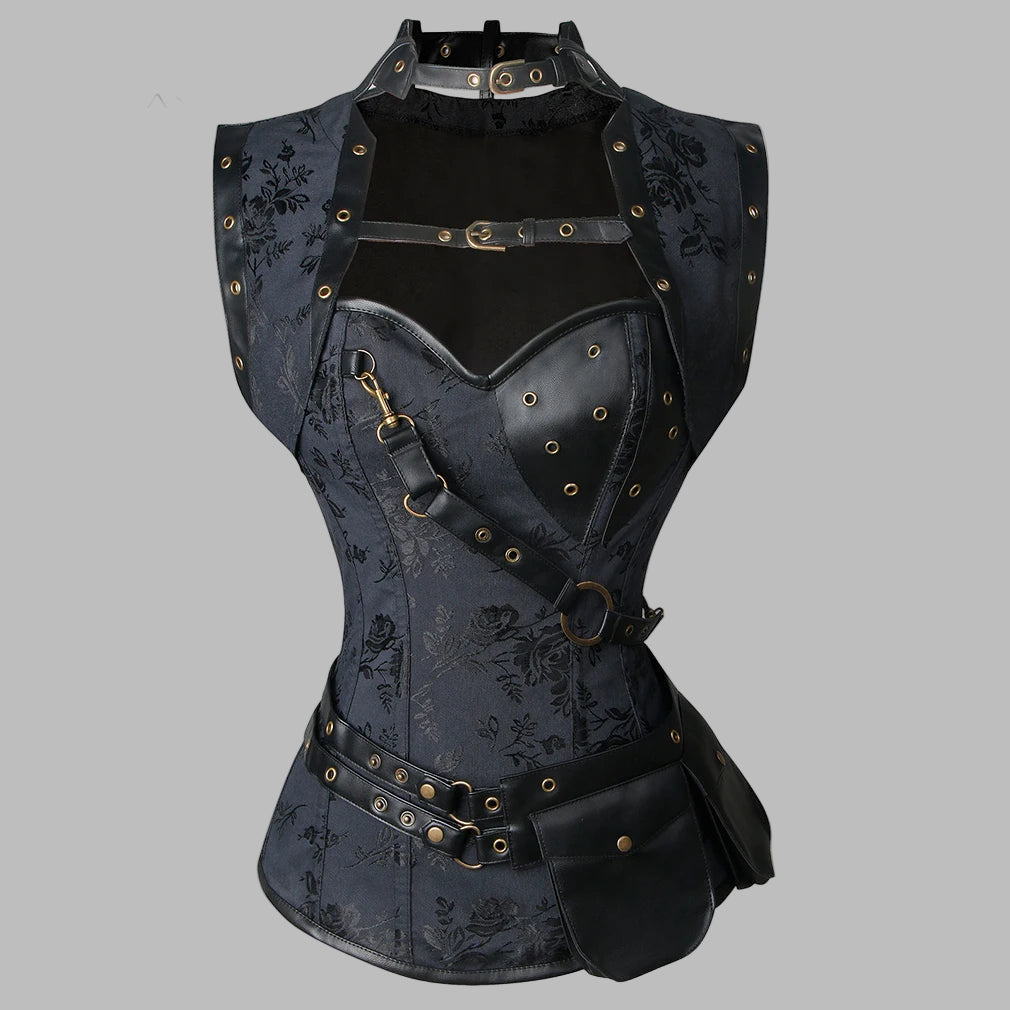 Gothic Steampunk Corset with Floral Pattern and Leather Straps