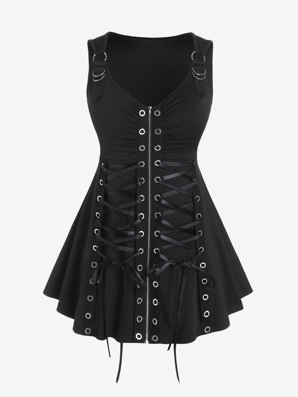 • Refined Details: A full zipper flap and meticulous finishes add a touch of sophistication to this gothic dress, while the adorned buckle belt introduces a hint of originality.