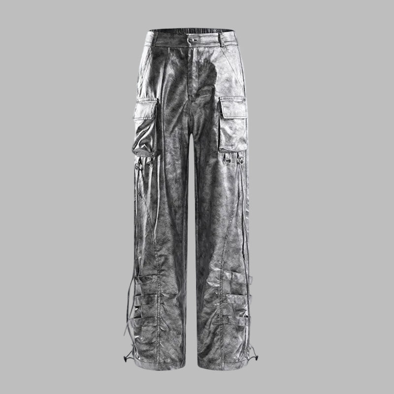 Gray Grunge Cargo Pants with Pockets