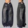 Grey Vintage Distressed Oversized Grunge Jeans with Chains