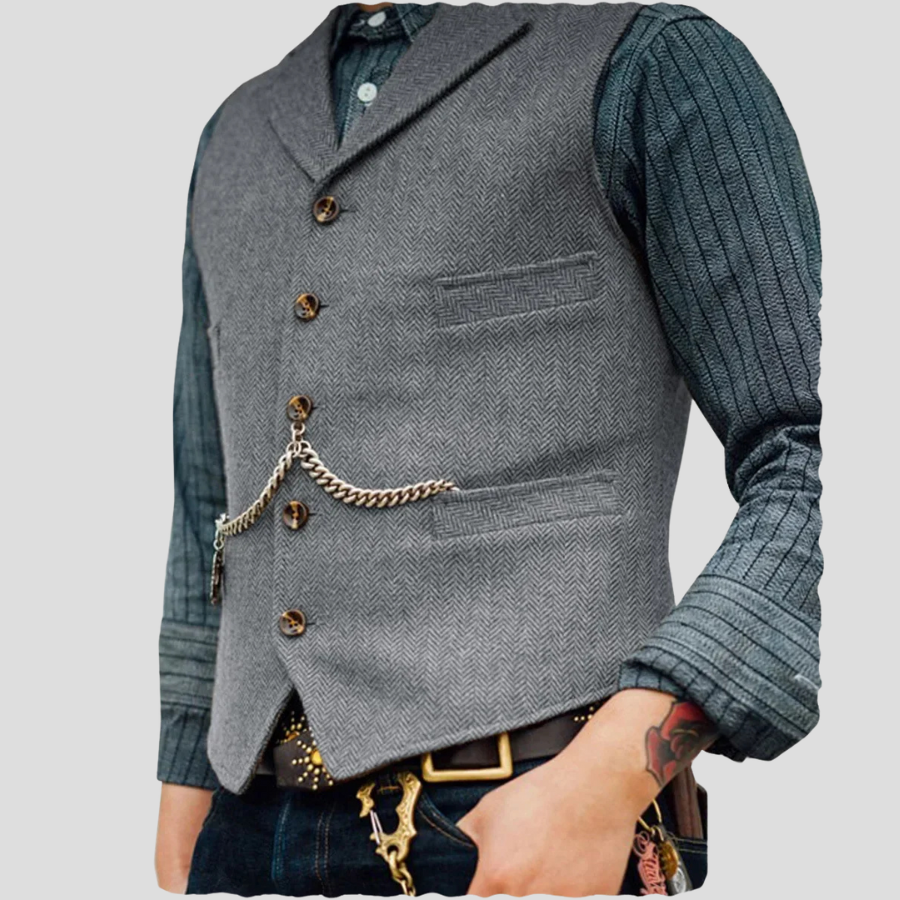 Gray Rock Vest with Vintage Chain Herringbone Texture