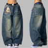 Grunge Rock Baggy Jeans with Belt Blue XXL