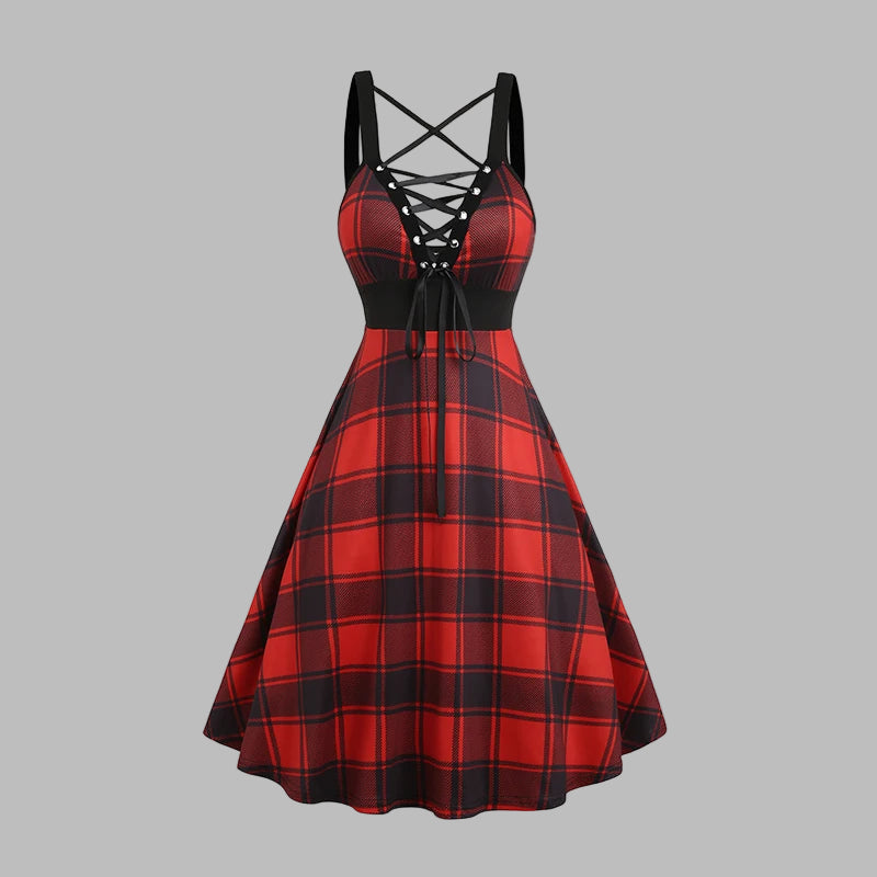 Grunge Punk Plaid Dress with Back Lacing XXL