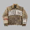 Grunge Rock Metal Denim Jacket with Leopard Print and Writings