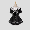 Czarna Sukienka Marynarska z Białą Kokardą Jirai Kei