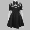 Jirai Kei Dress with Lace Bow and Lacing Black L