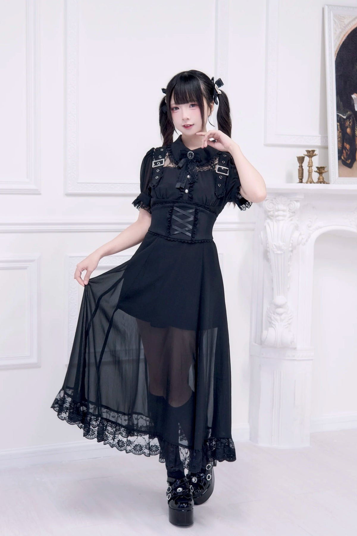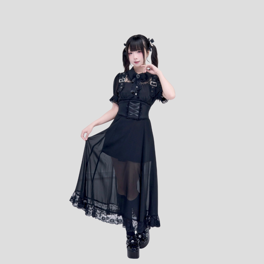 Jirai Kei Dress with Corset Black Kawaii Long