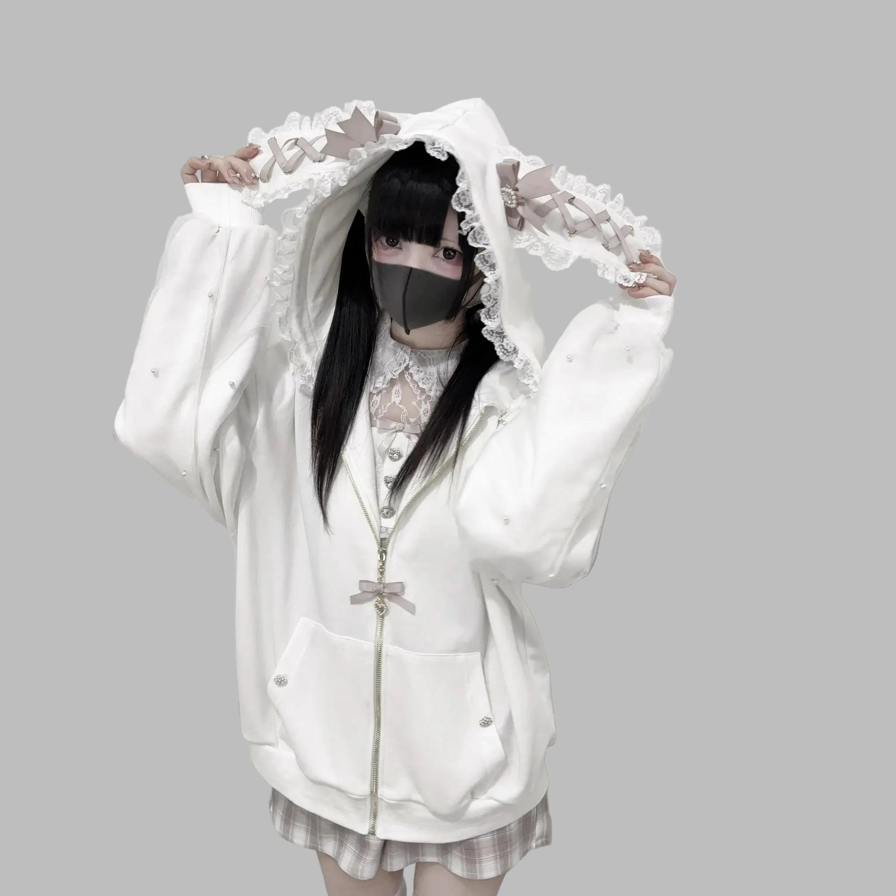 Jirai Kei Oversized Sweatshirt with Lace Bows White View options