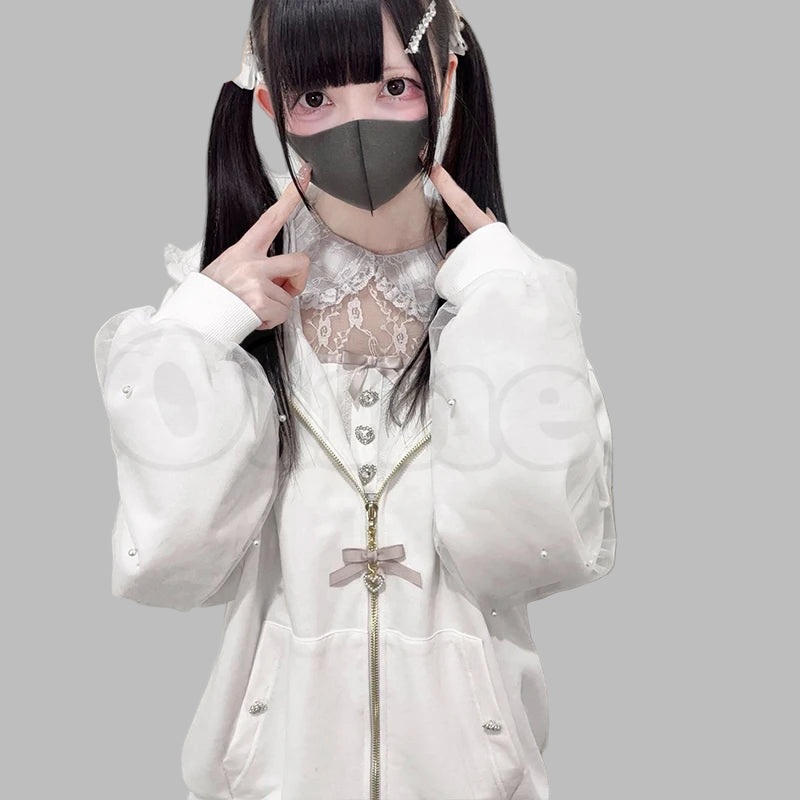 Jirai Kei Oversized Sweatshirt with Lace Bows White