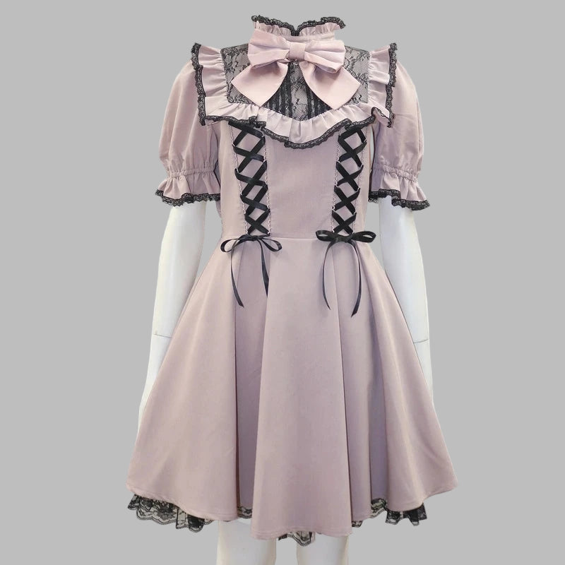 Lilac Punk Rock Dress with Double Lacing and Bows