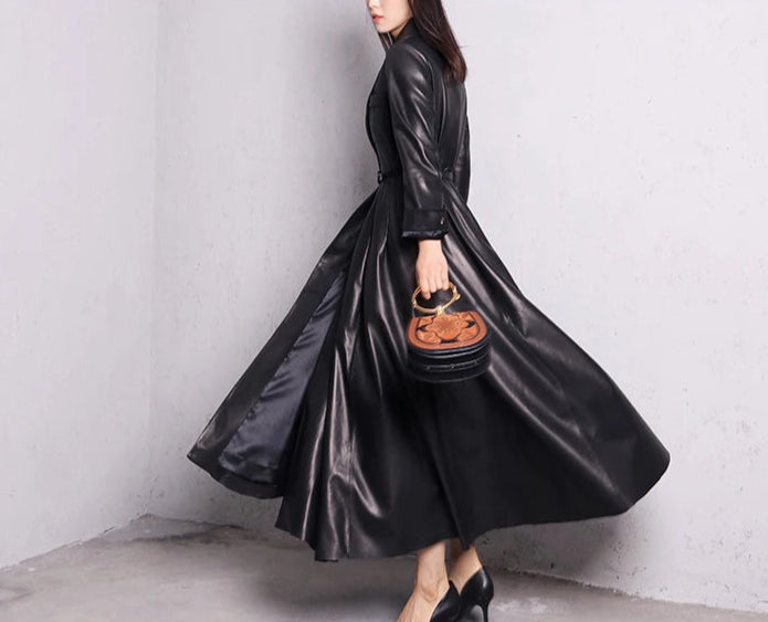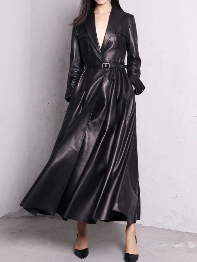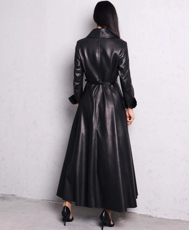 Long Black Elegant Leather Coat Metal Goth Rock View options