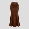 Długa Brązowa Spódnica Syrena z Marszczeniami w Pasie