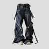 Men's Black Cargo Pants with Zippers, Straps, and Pockets Punk Techwear