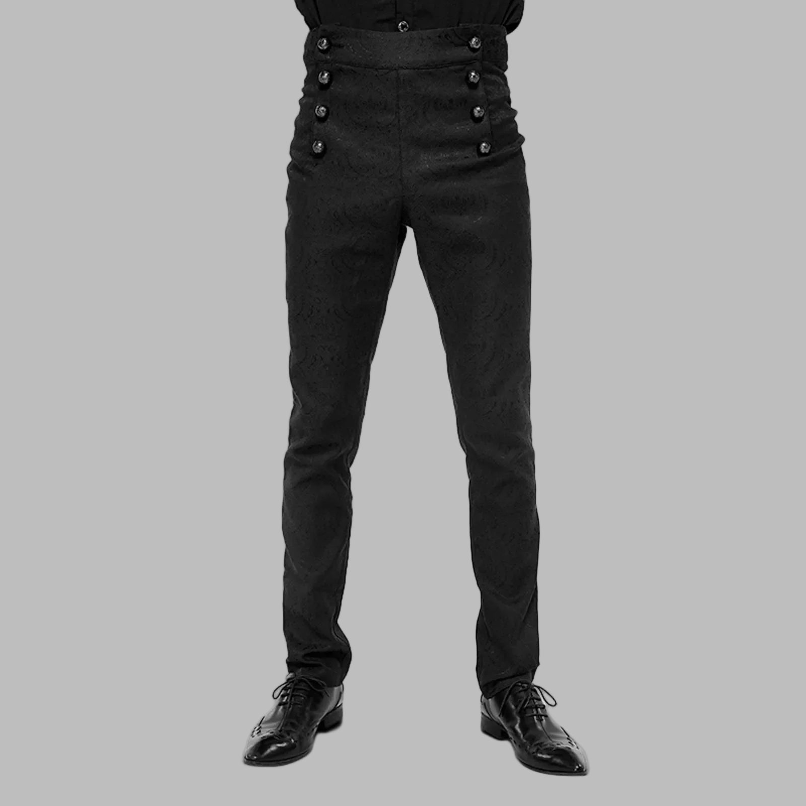 Men's Black Gothic High-Waisted Dress Pants with Buttons