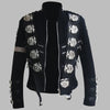 Men's Black Velvet Gothic Jacket with Metal Embellishments Steampunk Style