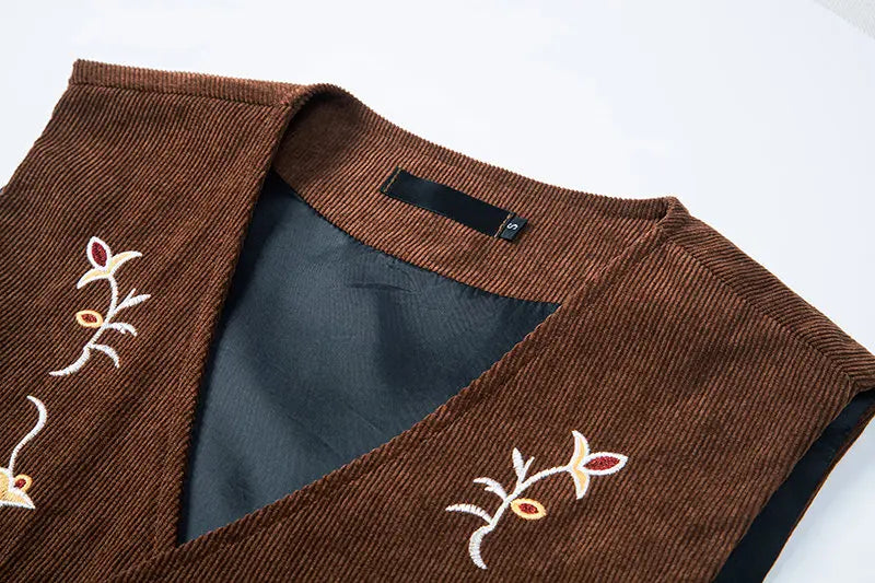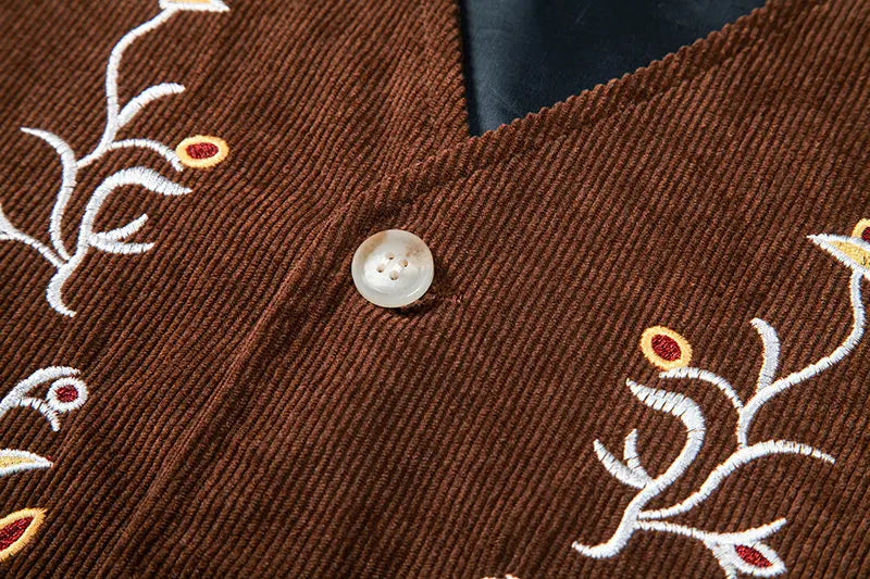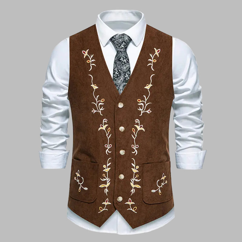 Men's Brown Steampunk Vest with Floral Embroidery View options