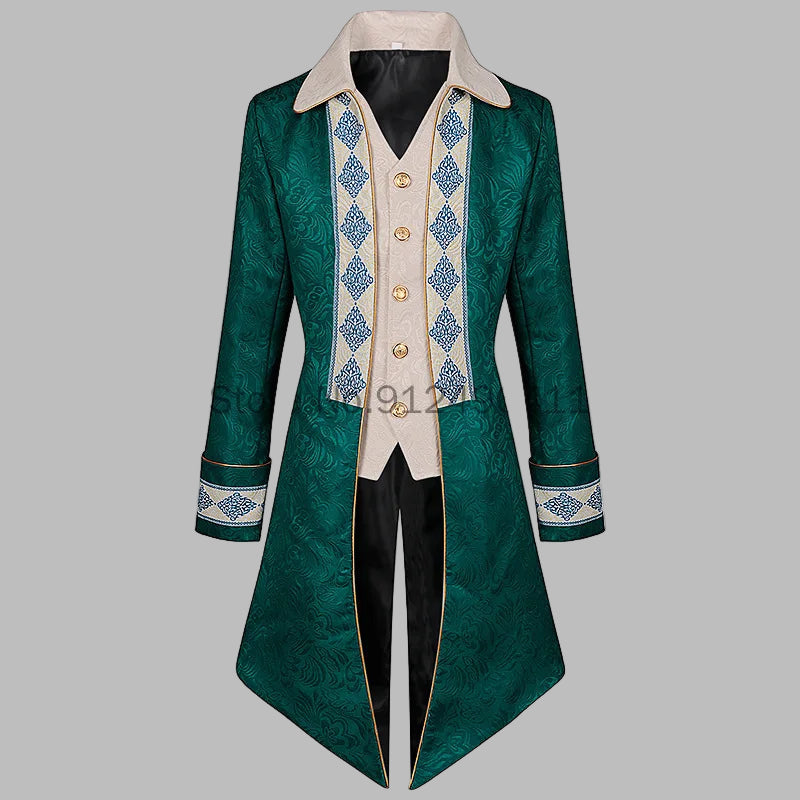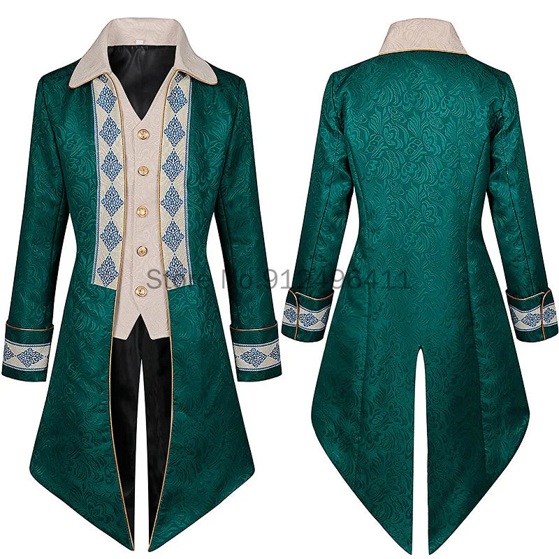 Men's Elegant Green Steampunk Tailcoat with Ornamental Accents View options