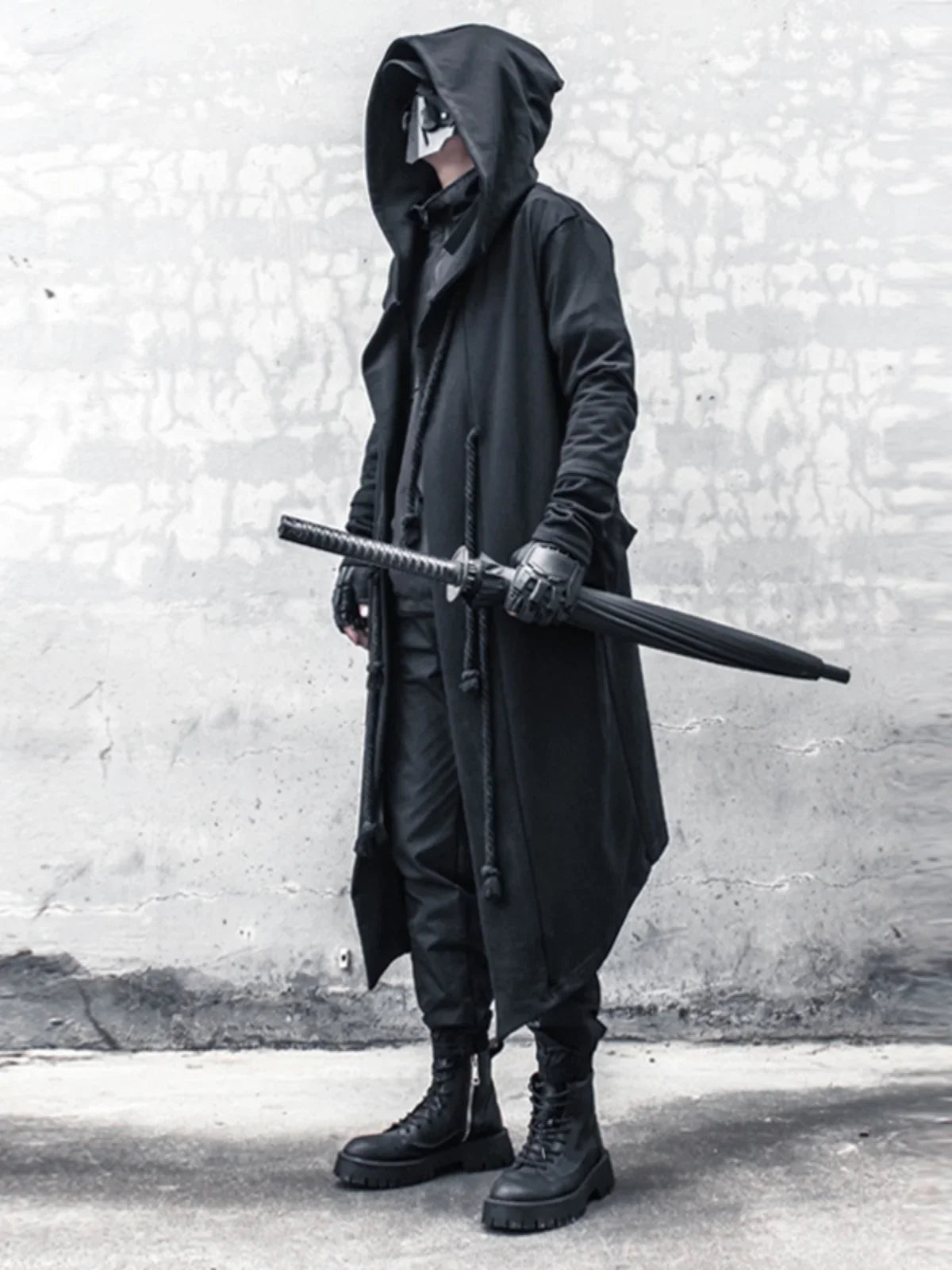 Men's Long Black Hooded Coat – Techwear Style View options