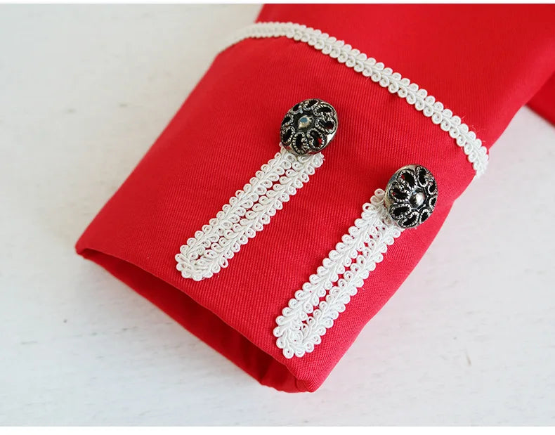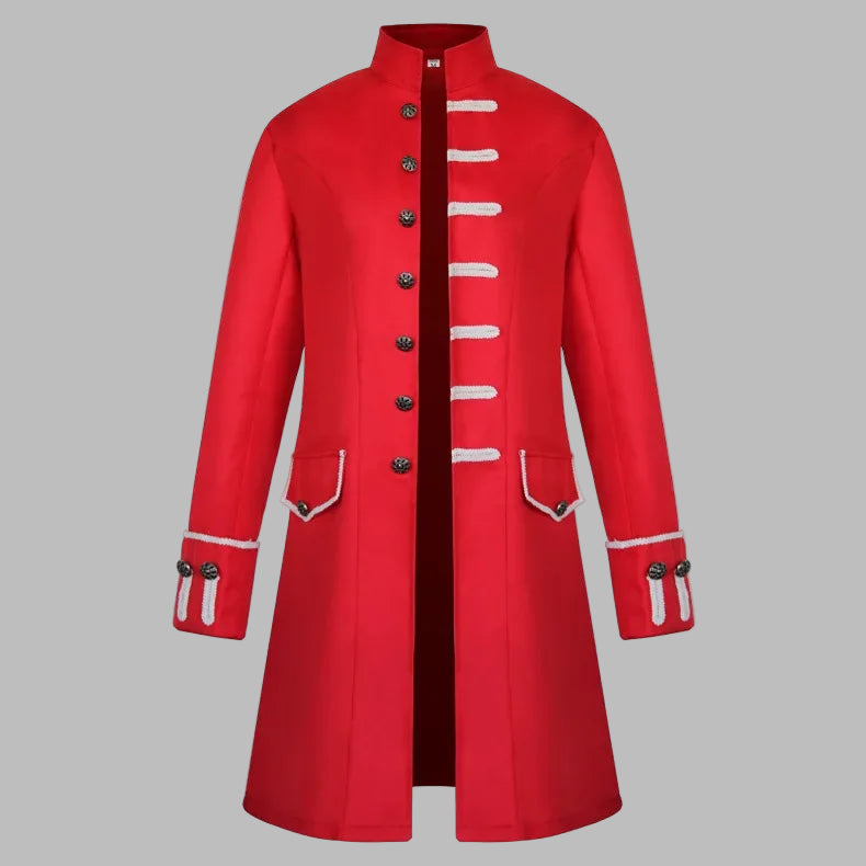Men's Red Steampunk Coat with White Decorative Cords View options