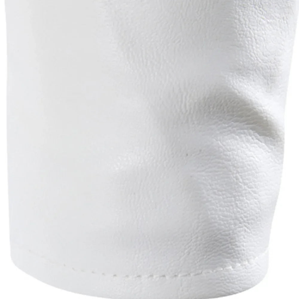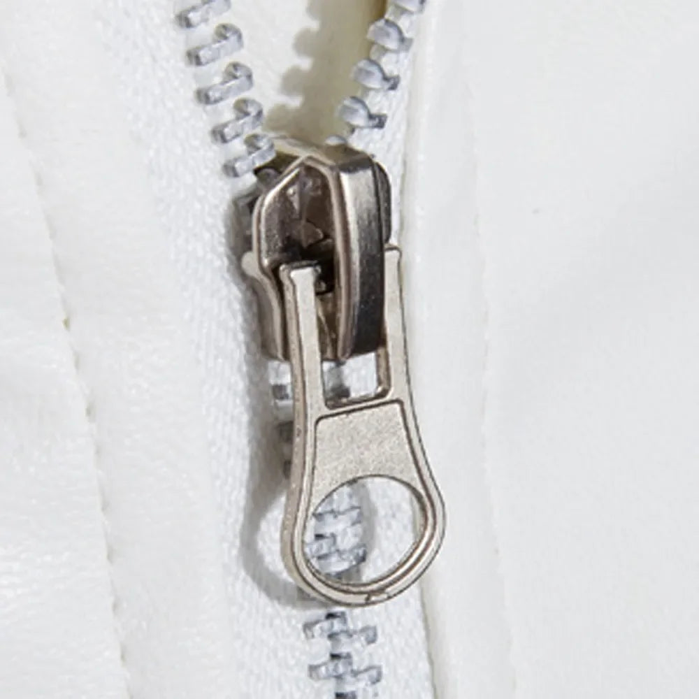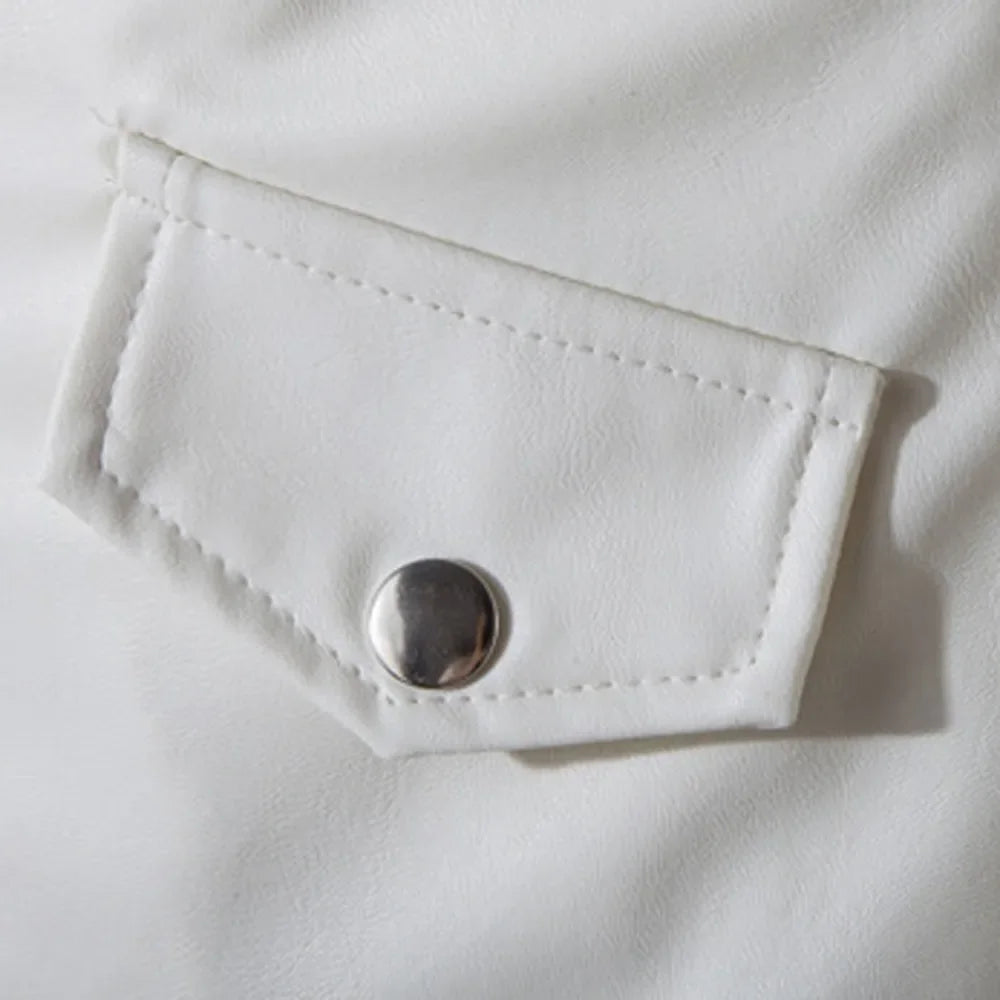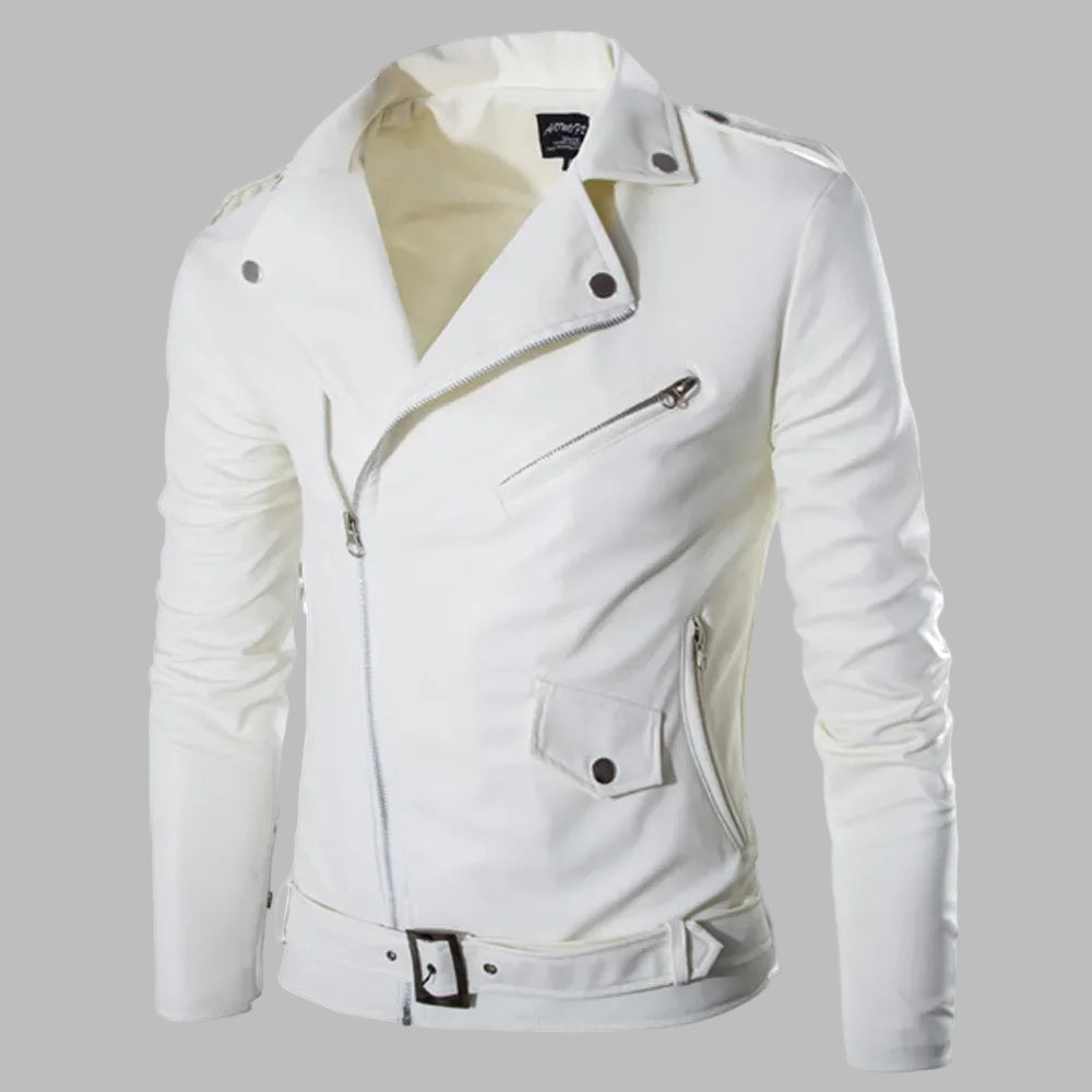 Men's White Leather Motorcycle Jacket with Belt