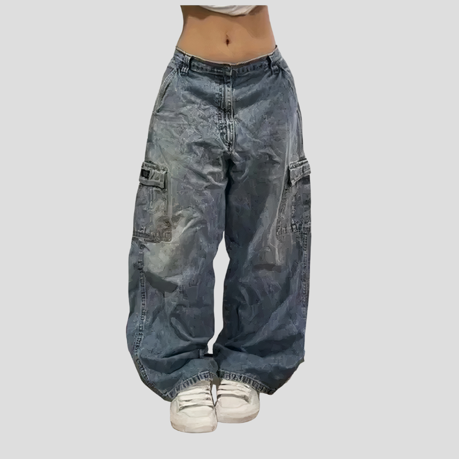 Oversizowe Spodnie Grunge z Kieszeniami Bojówkowymi Szare Vintage