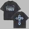 Oversized Grunge Punk Rock T-shirt with Blue Cross