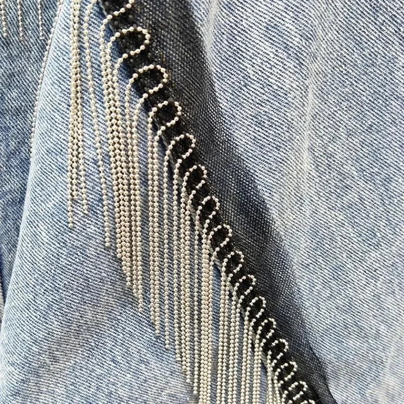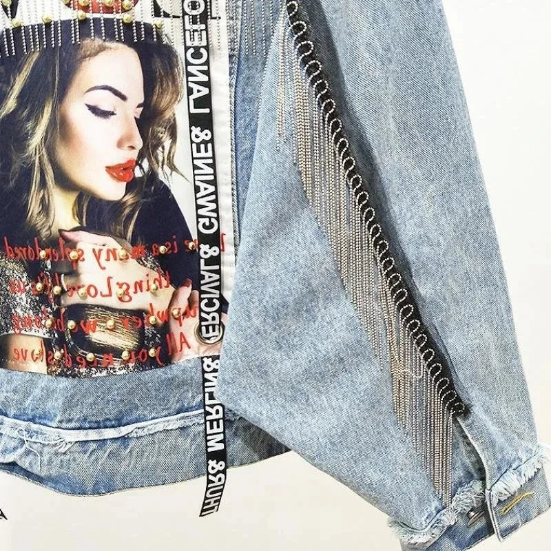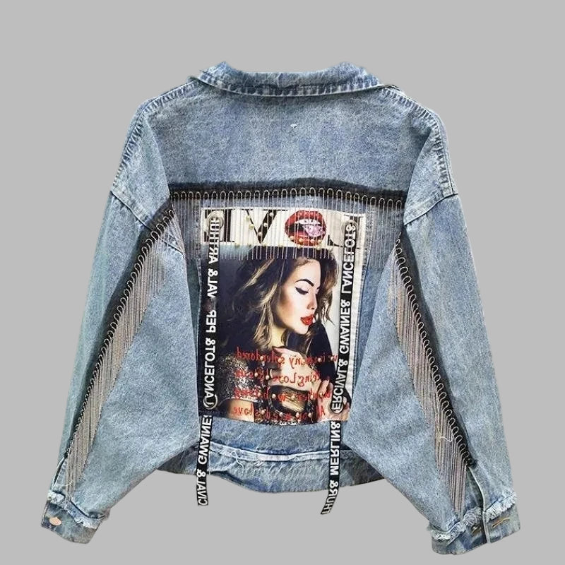 Oversized Punk Grunge Denim Jacket with Print Long Sleeve