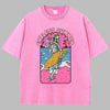 Pink Oversized Rock T-Shirt with Surfer Skeleton