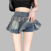 Vintage Punk Denim Mini Skirt with Belt and Buckles