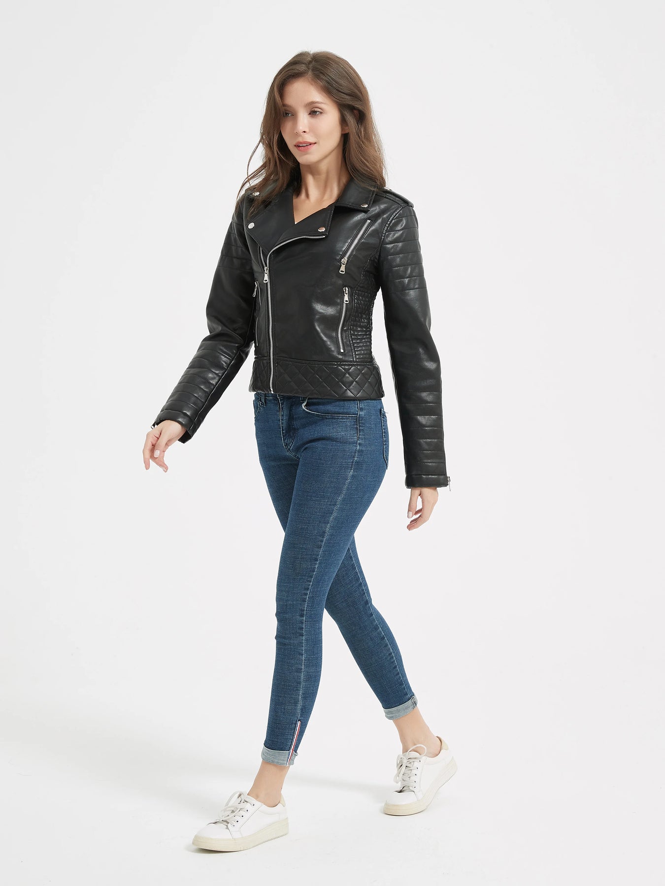 Punk Leather Jacket with Quilted Inserts View options