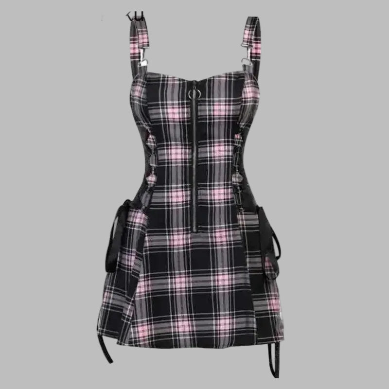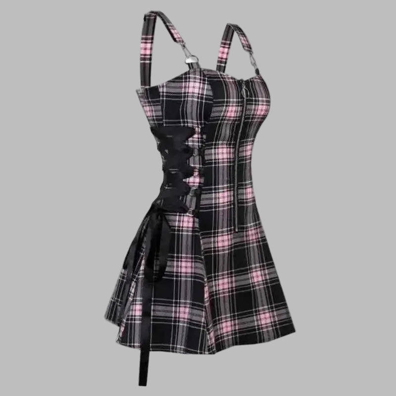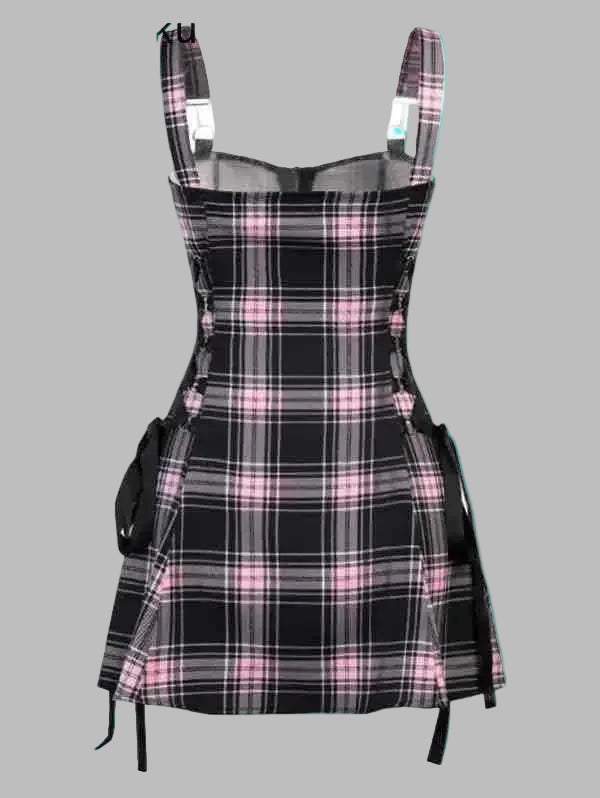 Punk Pink Plaid Dress with Straps and Tapes View options