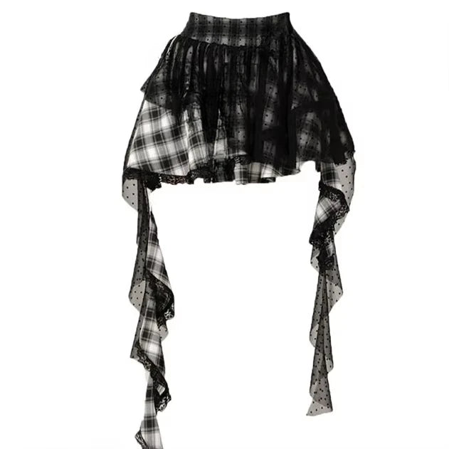 Punk Plaid Skirt with Lace and Ribbons