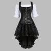 Punk Rock Black Leather Corset Dress with Asymmetrical Lace Skirt 4XL