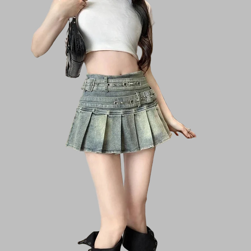 Punk Rock Denim Skirt with Ruffles and Black Lace View options