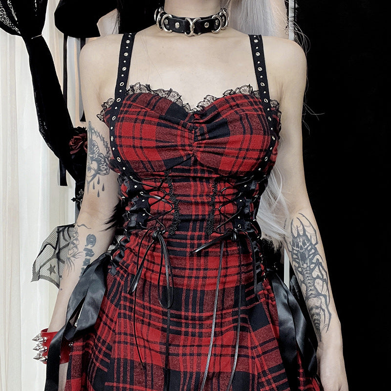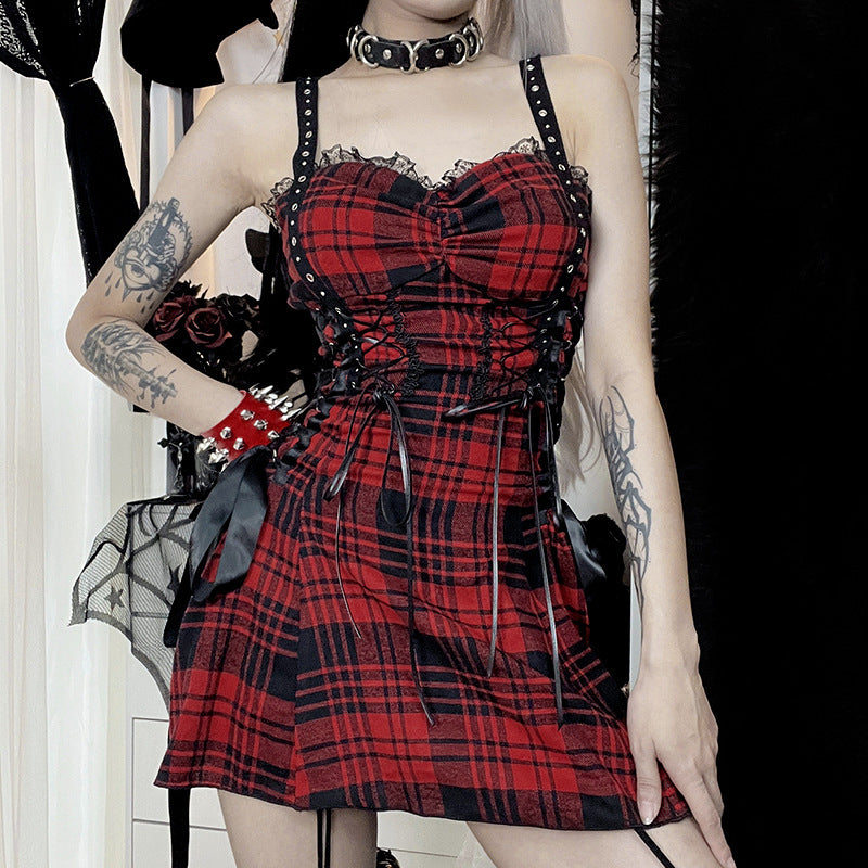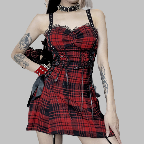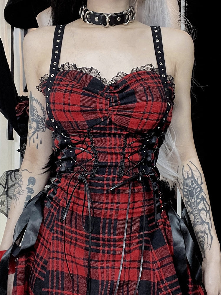 Red Tartan Punk Dress