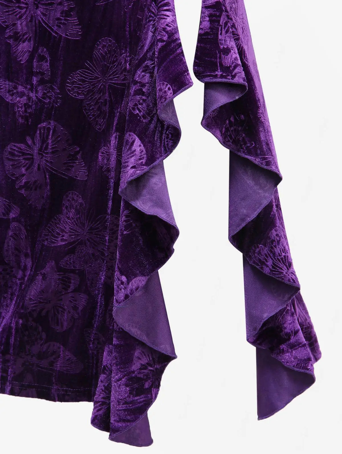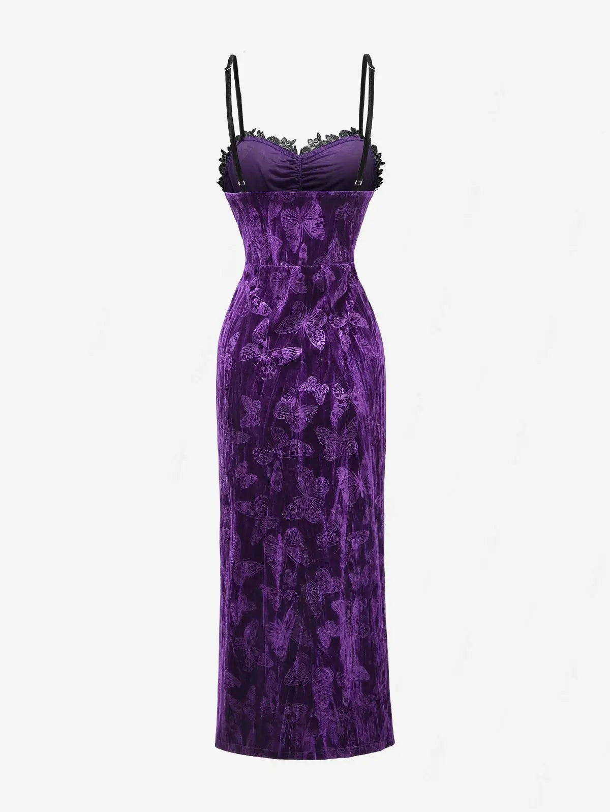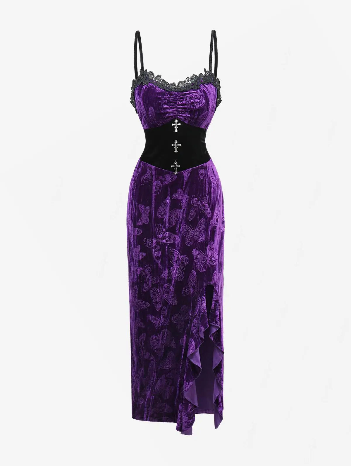 Purple Velvet Gothic Long Dress with Lace and Crosses