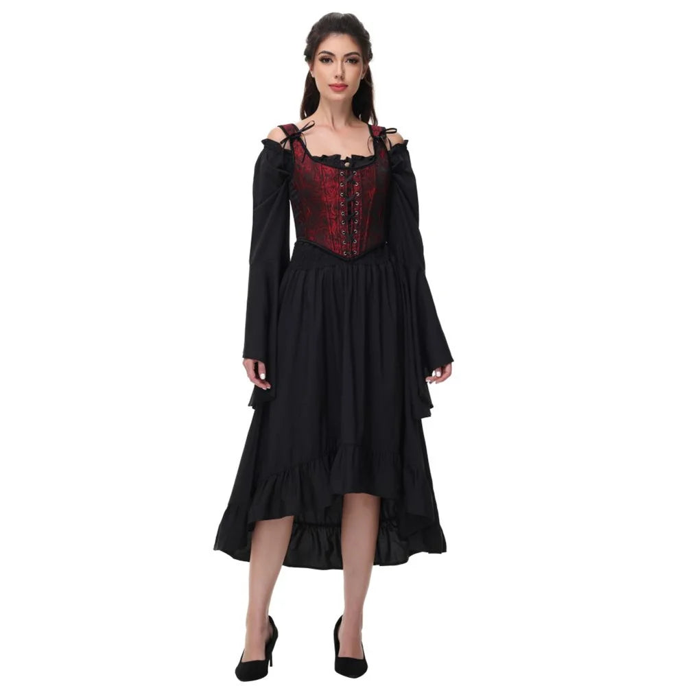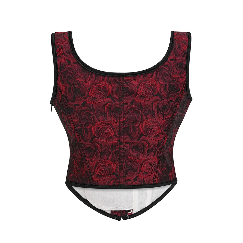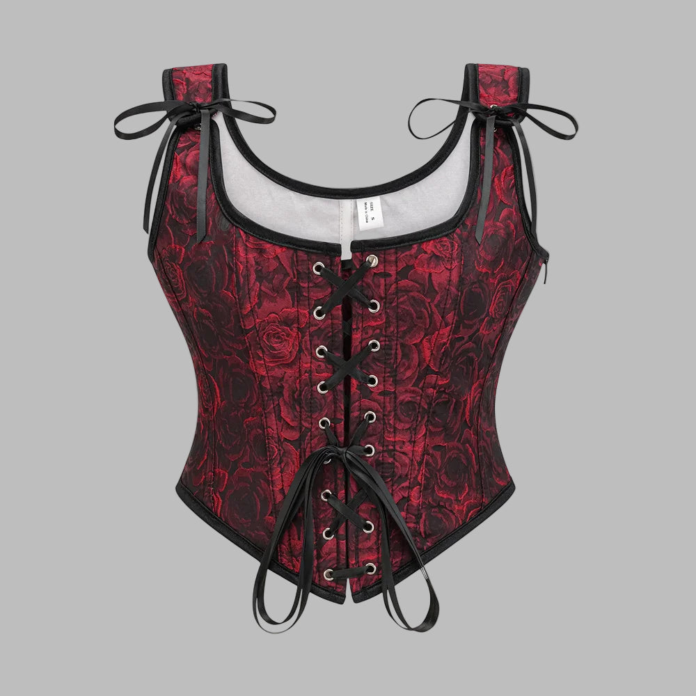 Red and Black Gothic Corset with Rose Lace-up and Straps