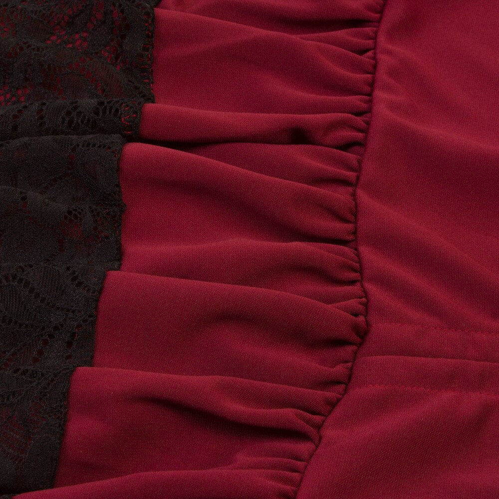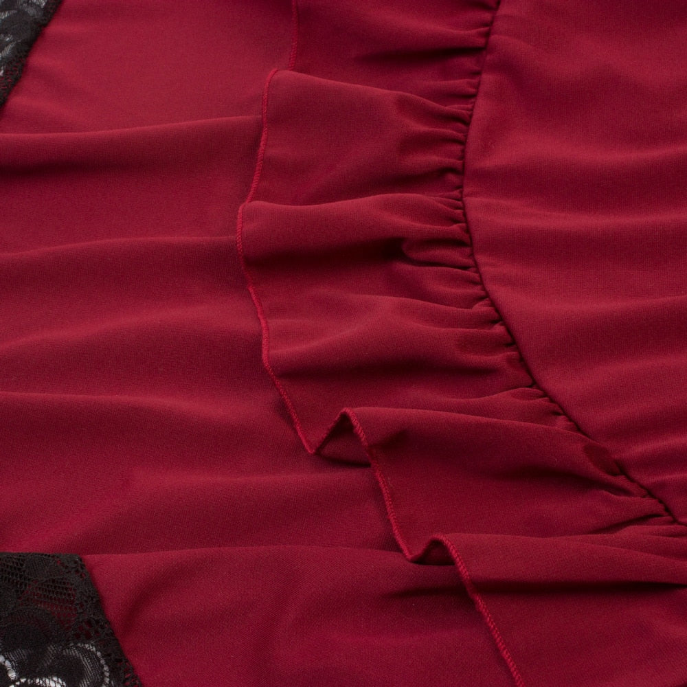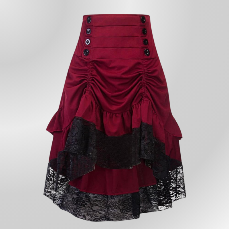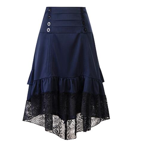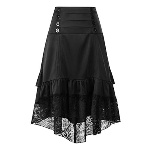 • Decorations: ruffles on the fabric, black floral lace, buttons on the front of the skirt
