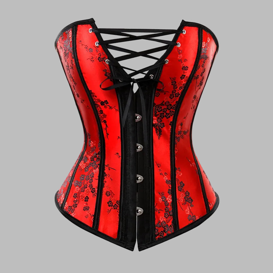 • Features: Floral pattern, jacquard, overbust corset, back lacing
