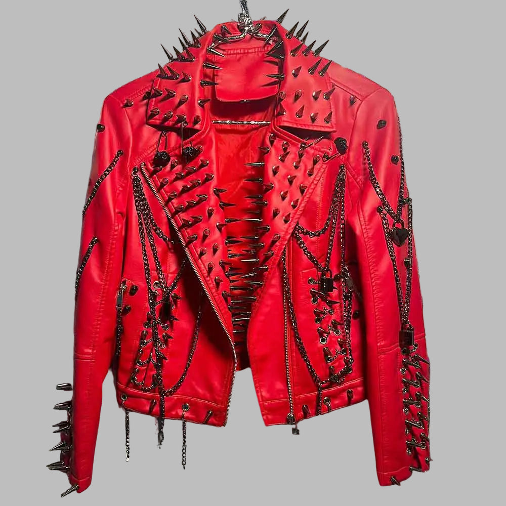 Red Punk Jacket with Studs and Chains