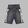 Rock Denim Shorts with White Bones Metal Hardcore View options