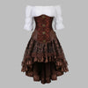 Steampunk Dress with Brown Corset, Gold Buckles, and Lace