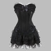 Steampunk Gothic Black Corset with Bows and Lace Ruffle 6XL
