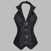Steampunk Gothic High Collar Corset with Metal Clasps Black