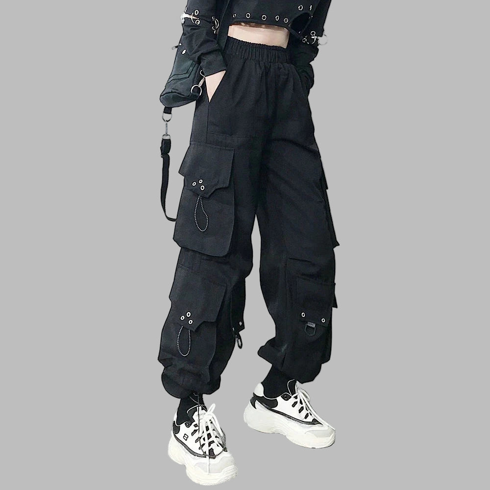 Tactical Black Grunge Punk Pants with Pockets and Chains