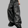 Unisex Grey Ripped Baggy Punk Metal Jeans with Chains XXL