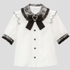 White Gothic Kawaii Jirai Kei Blouse with Lace and Contrasting Bow View options