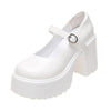 White Mary Jane Platform Shoes with Strap and Buckle Size 42