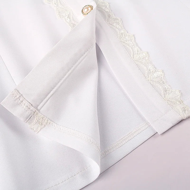 White Steampunk Blouse with Ruffle and Puff Sleeves